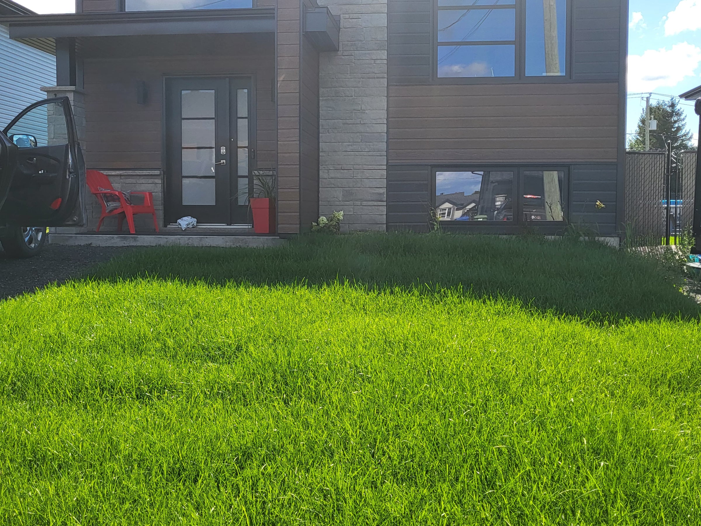 On a hésité longtemps entre semer et tourner, mais après tout le travail qu'on a fait sur le terrain nous mêmes, j'ai dit fuck off et j'ai succombé à vos annonces. On est 1000% satisfaits du résultat. Le gazon est vraiment superbe. Ici, il a 23 jours de vie 🤩🙆♀️. Gazon: vert de jalousie. L'installation a été faite avec excellence. Super bon service avant et après vente.